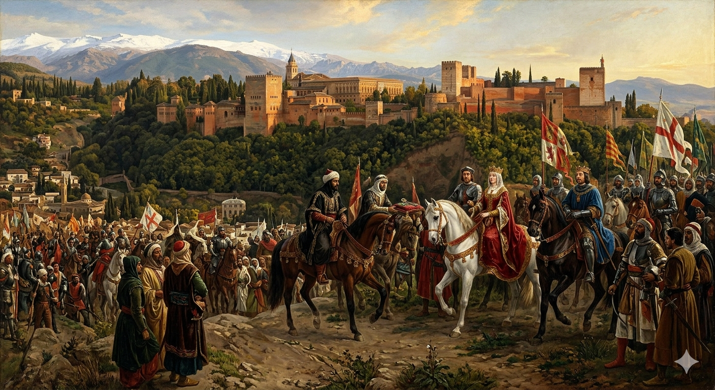 On January 2, 1492, one of the most consequential moments in the history of the Iberian Peninsula unfolded beneath the walls of the magnificent Alhambra palace. Muhammad XII — known to the Spanish as Boabdil — handed the keys of the city of Granada to the Catholic Monarchs, King Ferdinand II of Aragon and Queen Isabella I of Castile, formally surrendering the last Muslim emirate in Western Europe. This single act brought to a close nearly eight centuries of Muslim political presence in Spain, concluded the ten-year Granada War that had raged since 1482, and completed the centuries-long Christian campaign known as the Reconquista. The Fall of Granada did not merely end a kingdom; it reshaped the religious, cultural, and geopolitical identity of an entire continent and opened the door to a new age of Spanish imperial ambition.