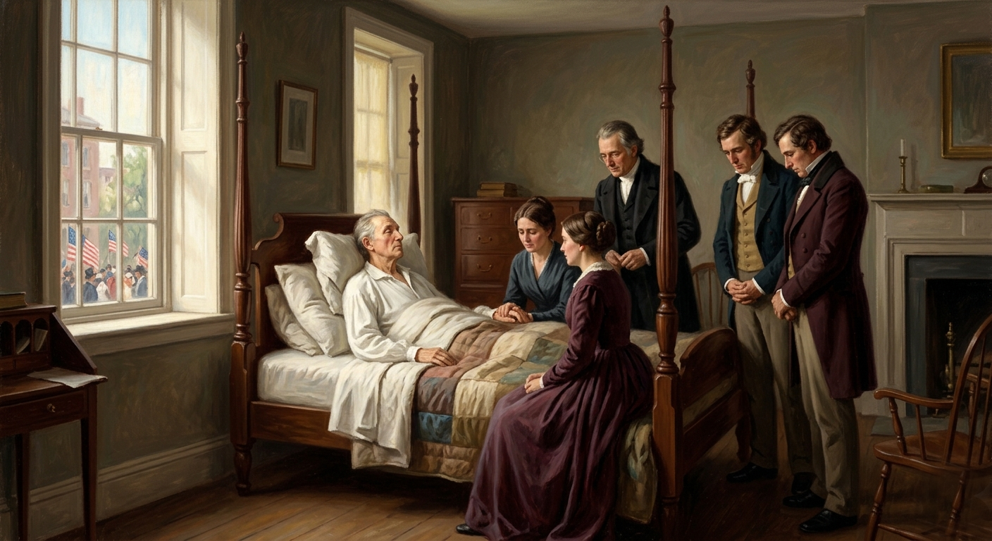 On the morning of July 4, 1831, as the nation celebrated its fifty-fifth anniversary of independence, James Monroe lay in the Gouverneur home in New York City. Newspapers across the country had been reporting on his declining health in the weeks preceding the anniversary, and many Americans were aware that the last of the Founding Father presidents was near death. He died that day — accounts are less specific about the precise time than those reporting the deaths of Adams and Jefferson five years earlier, but the death occurred on July 4, 1831, from the combination of heart failure and tuberculosis that had been overtaking him for months. He was surrounded by his daughter Maria and her family. He was the third president to die on Independence Day, the third of the first five presidents to depart on the nation’s birthday, and his death completed a pattern so extraordinary that it seemed to call for explanation beyond the ordinary vocabulary of coincidence.