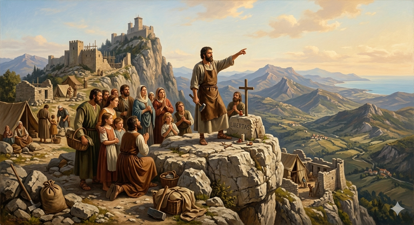 The founding of San Marino on September 3, 301 AD is simultaneously a historical event, a founding legend, and a statement of political philosophy. As a historical event, it is imperfectly documented — the gap between the legendary founding and the first solid historical evidence is four centuries long, and the accounts that describe Marinus’s life and death were written centuries after he is said to have lived. As a founding legend, it is as coherent and compelling as the founding stories of any nation on earth: a man fleeing persecution, a mountain refuge, a community built on shared values, a dying declaration of freedom. As a statement of political philosophy, Relinquo vos liberos ab utroque homine remains as radical and as relevant as it was in 301 AD — a declaration that legitimate authority belongs neither to emperors nor to popes but to the free community of people who choose to govern themselves.