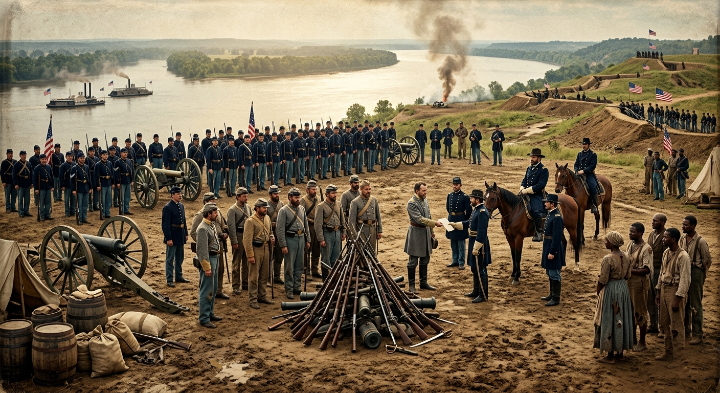 At ten o’clock in the morning on July 4, 1863 — the eighty-seventh anniversary of the Declaration of Independence — approximately 29,000 Confederate soldiers filed out of their fortifications around Vicksburg, Mississippi, stacked their rifles in the mud, furled their battle flags, and formally surrendered to Major General Ulysses S. Grant and the Army of the Tennessee. After forty-seven days of siege, during which the city’s garrison had been pounded daily by artillery from both land and river, its soldiers fed on steadily diminishing rations until they were eating mule meat and shoe leather, and its civilian population had taken to living in caves dug into the yellow clay hillsides to escape the constant bombardment — after all of this, Lieutenant General John C. Pemberton handed over the city, the garrison, 172 cannons, and approximately 50,000 rifles to the Union general who had outmaneuvered, outfought, and outwaited him.